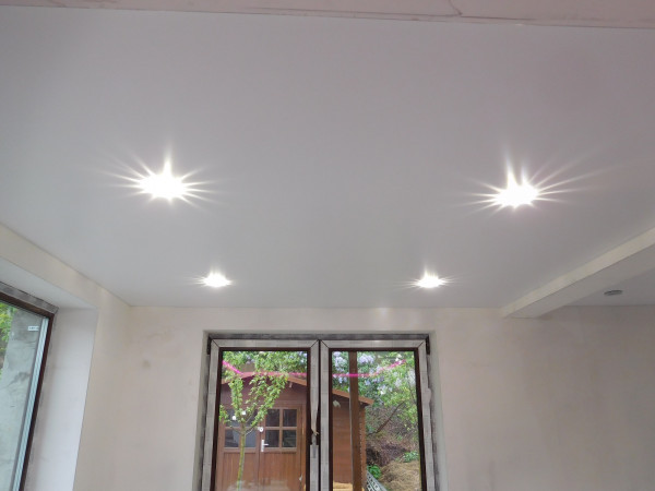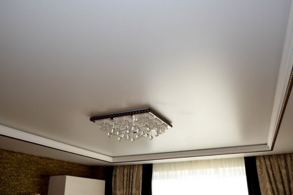 Бесшовные натяжные потолки сегодня изготавливаются как из ткани, так и из пленки ПВХ. Ширина полотна позволяет монтировать их в помещениях большой площади.