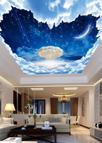 Несмотря на кажущуюся «активность» такой отделки, она более универсальна, чем можно подумать. Посмотрите фото готовых работ в каталоге — «небо» подходит к разным стилям дизайна от классики до минимализма.