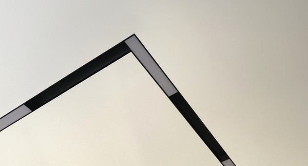 Конструкция крепления к стенам демпферных потолков проста и изящна. Шпателем в профиль заправляется ткань, образуя четкие углы и стыки, что избавляет от необходимости использовать маскировочные ленты, потолочные плинтуса и другие способы маскировки щелей.