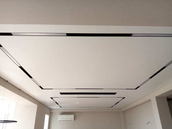 Натяжные потолки с нишами SLOTT или демпферные — новое слово в отделке жилых и общественных помещений в Екатеринбурге. Способ их крепления таков, что позволяет встраивать в любое место на потолке световые ниши и создавать идеально четкие стыки.
