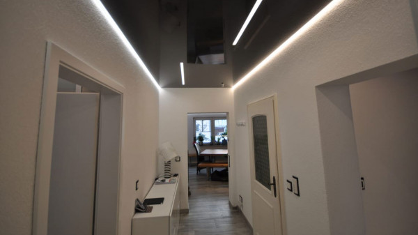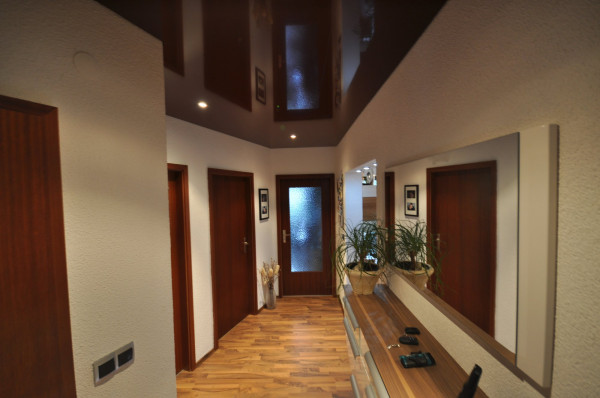 Отделочные материалы, которые используются для оформления коридора, должны быть прочными и износостойкими. Кроме того, они не должны накапливать грязь, так как ее в этом помещение бывает больше, чем в остальных. Оптимально этим требованиям отвечает натяжной потолок. Он обладает антистатическими свойствами, благодаря чему не накапливают пыль. В ходе уборки потолок достаточно протереть сухой или влажной салфеткой, что не потребует много времени и сил.