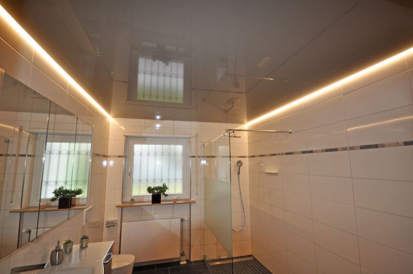 Отделка в ванной комнате требует внимательного выбора материалов. Натяжной потолок в ванной оптимально отвечают всем требованием данного типа помещений – он не боится влаги и перепадов температур. Кроме того, такие отделочные материалы не требуют специального ухода – в ходе проведения уборки достаточно протереть полотно мягкой салфеткой. Еще одно важное преимущество заключается в том, что натяжные потолки в ванной в Екатеринбурге способны защитить помещение от затопления соседями, что особенно актуально для ванной. Используемые материалы способны выдерживать нагрузку до 100 л/м2.